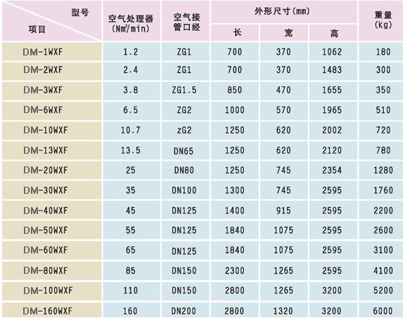 ◆ 無熱再生吸附式壓縮空氣干燥機(jī)參數(shù)表: